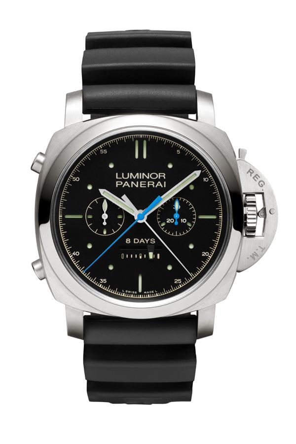 Luminor 1950 Rattrapante 8 Days Titanio手表以钛合金制造,表径47毫米,节制杆能够无效地密封表冠,防水深”度可达10个大气压。在表”底12边形的核心有一个蓝宝石水晶窗口,透过它能够瞥见P.2006机芯,高雅风雅。